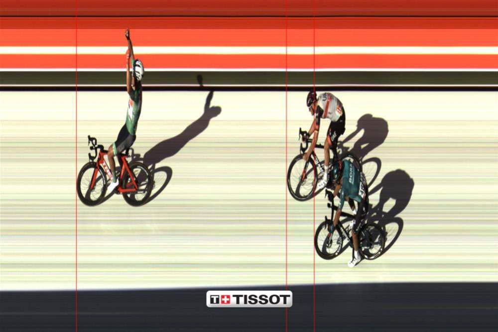Se llega al sprint en la etapa 16 con final en TOMARES y gana el más fuerte PEDERSEN, por delante de Ackermann, Danny Van Poppel, Wright y Pacher.